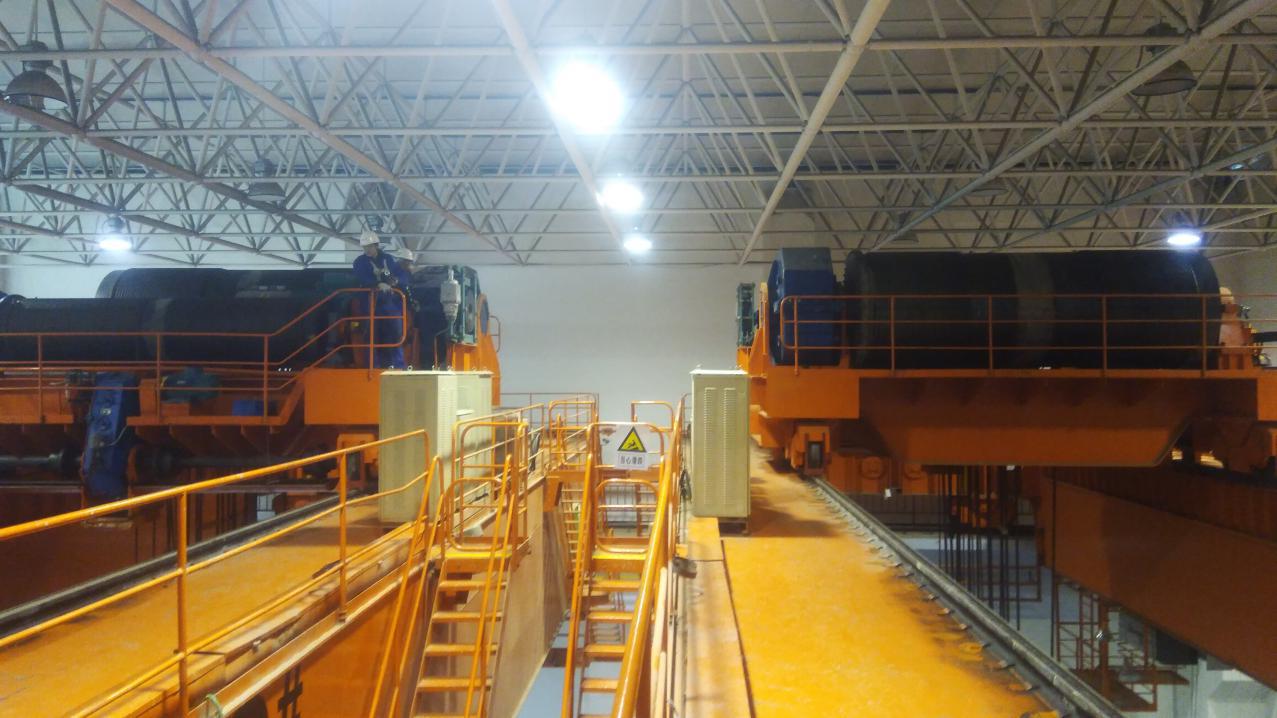 小峽水電站廠房兩臺250T/50T雙梁橋機并車成功