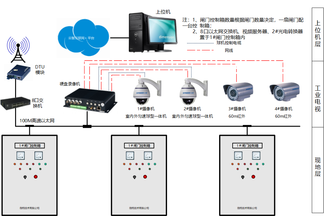 微特承接小云峰水電站此次改造的大壩溢流壩部分共7孔閘門,閘門為平板門,單孔凈寬18.5米,各閘門并沒有配置遠(yuǎn)程控制系統(tǒng),閘門控制室距離當(dāng)?shù)刂蛋嗍逸^遠(yuǎn),對閘門的監(jiān)視及控制極為不便。