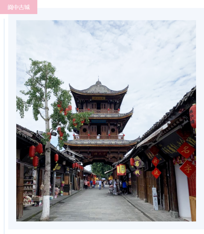 嘉陵江的美,由古至今。閬中,更是嘉陵江上的一顆明珠,雄踞嘉陵江中游,嘉陵江縱貫其南北,也是四川省內的歷史文化古城。在生產上是四川省蠶繭基地縣和全國油桐基地縣之一?!睎|河桐油“透明度好,碘質高,在國際市場上有較好的聲譽。閬中的絲綢生產已有一千多年的歷史。釀造業也興旺發達,特別是暢銷中外的名特產保寧醋,具有300多年的歷史。