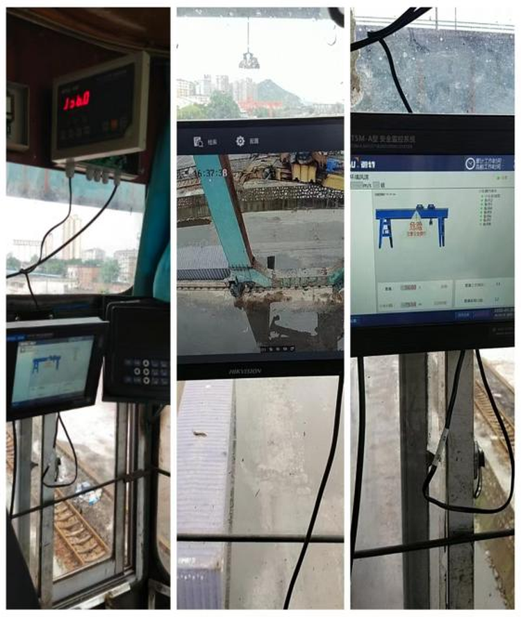 門吊運行時的起重量、吊鉤高度、吊鉤起升下降速度、操作指令等實時顯示;吊重作業時顯示當前空、重箱狀態;顯示作業對象是否為火車;顯示卸火車狀態,同時顯示是否完成點動操作;顯示裝火車狀態,同時顯示是否實施空重轉換操作。