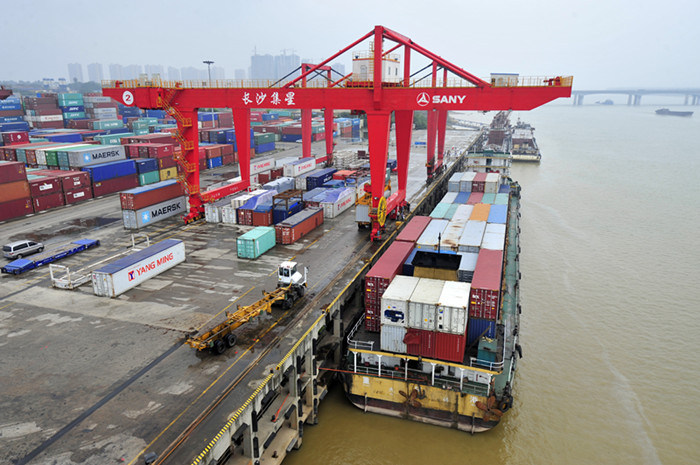 記者在長沙新港看到,這艘集裝箱船正在卸貨。該輪長109.9米,型寬17.24米,型深5.6米,滿載吃水4.85米。“這個噸位級別的船舶,7月、8月可滿倉抵達(dá)長沙,其他月份也可減倉或轉(zhuǎn)載到達(dá)。”長沙新港公司副總經(jīng)理辛華說,“湘江航道條件不斷完善,給大型集裝箱輪船抵長提供了條件。特別是今年湘江株洲至城陵磯2000噸級標(biāo)準(zhǔn)航道全線貫通,枯水期貨運(yùn)量不減反增。”