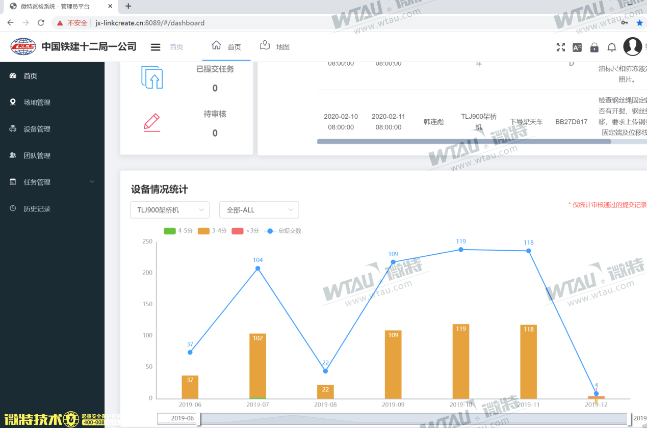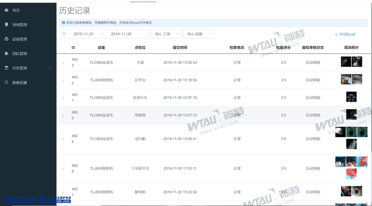 微特點檢系統現有特色功能:點檢數據分析、項目場地管理、人員管理、任務管理、拍照上傳、數據導出等。