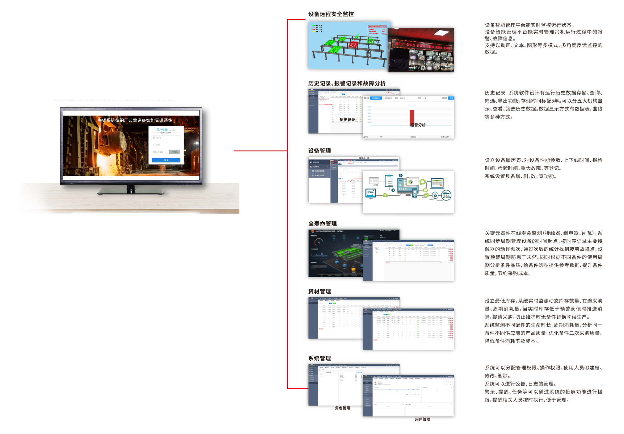 WTCIMS-V2.0版起重設備智能管理系統是微特技術有限公同開發的針對鋼廠設備管理智能化的解決方案,是一個綜合型的設備管理軟件,是一歉共享型的工作平臺。