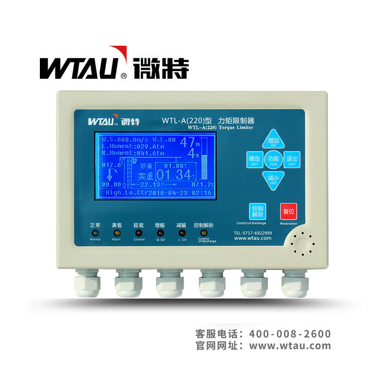 WTL-A220力矩限制器主機是塔機遠程安全監控系統專用控制主機,該產品獲得湖北省重大科學技術成果獎。 WTL-A220力矩限制器分為3限位、5限位、6限位與遠程型、單機型配制。系統可實現對塔機吊重、小車幅度、吊鉤高度、回轉方位、實時風速、GPS定位進行監控,同時具有可實現數據遠程傳輸,遠程監控塔機工況等其它定制化功能。