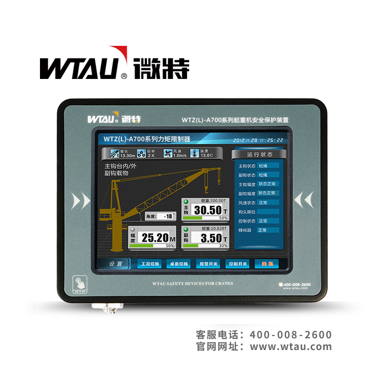 WTZ-A700起重量限制器裝備黑匣子功能,可升級為工作量統計功能,同時可監測4~12路載荷信號。