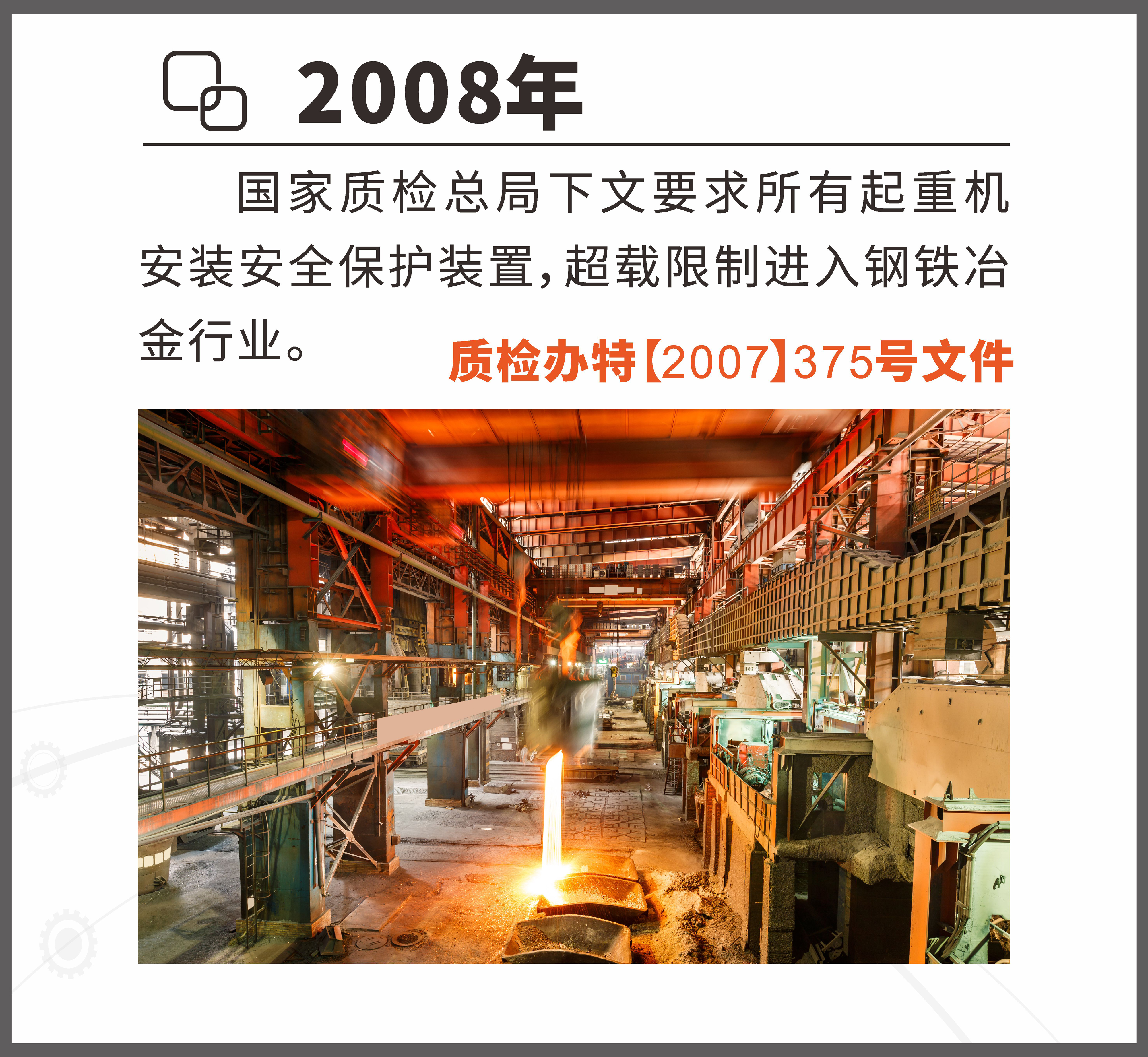 微特開始自主研發、設計安全監控管理系統,及至微特參與起草的第四項國家標準GB/T 28264-2017《起重機械 安全監控管理系統》正式實施,微特為鋼鐵冶金行業研發的適合高溫、高粉塵環境的相關監控產品已成功應用于全國各大鋼廠的起重設備上。